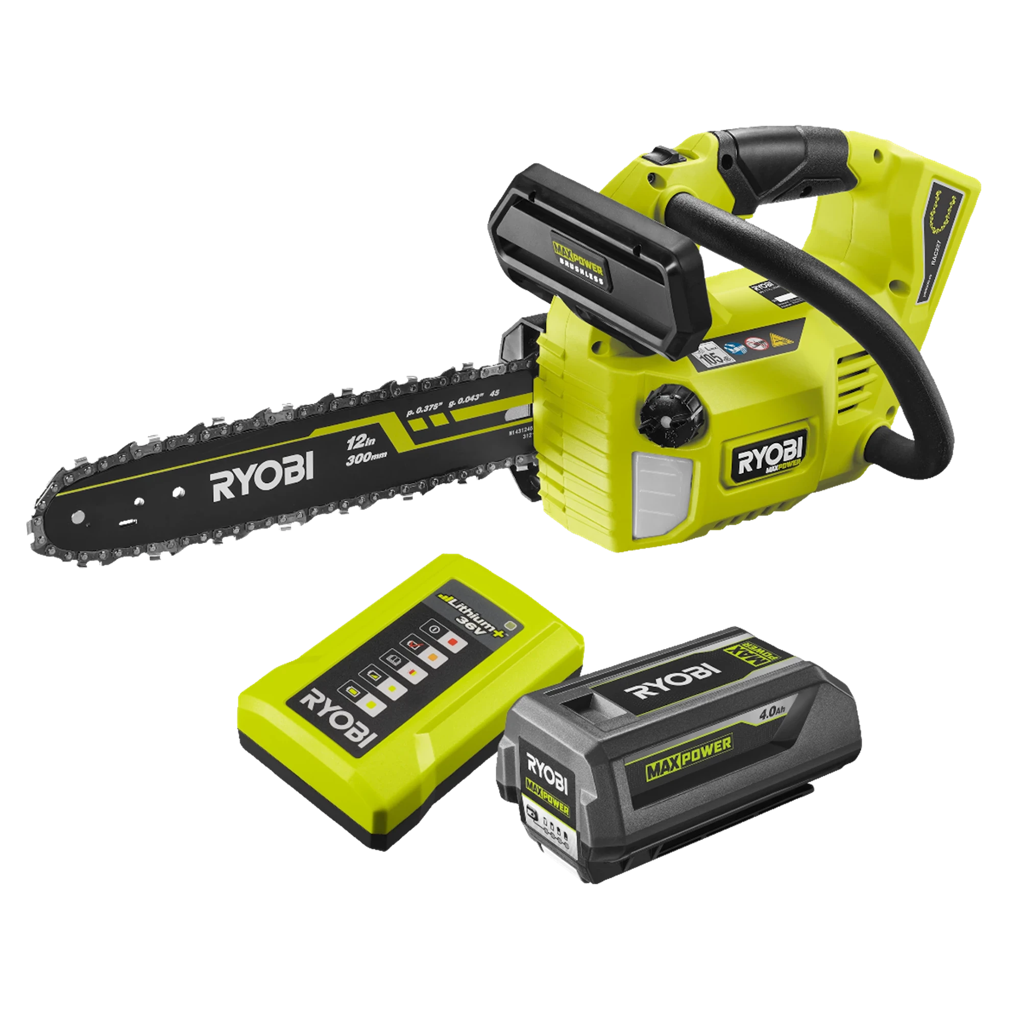 Motosega a Batteria Ryobi 36V MAX POWER Brushless con Batteria 4.0 Ah e Caricabatterie | Ryobi