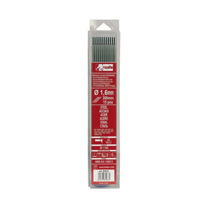 Elettrodi Rutili Telwin 1,6 mm, Confezione da 15 Pezzi per Saldatura MMA su Acciaio e Carpenteria Leggera | Telwin