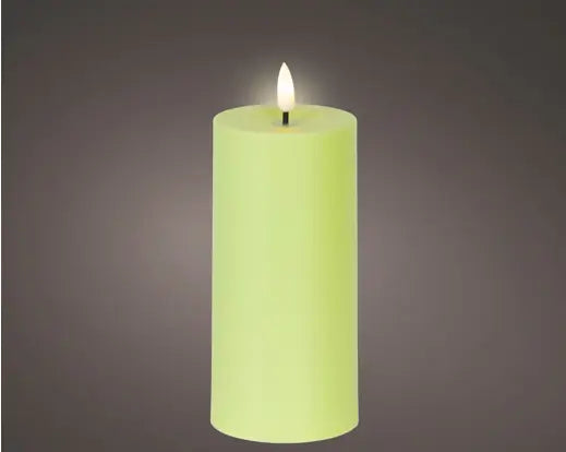 Candela LED Cilindrica Kaemingk Verde 15 cm, Candela in Vera Cera a Batteria Luce Calda | Kaemingk