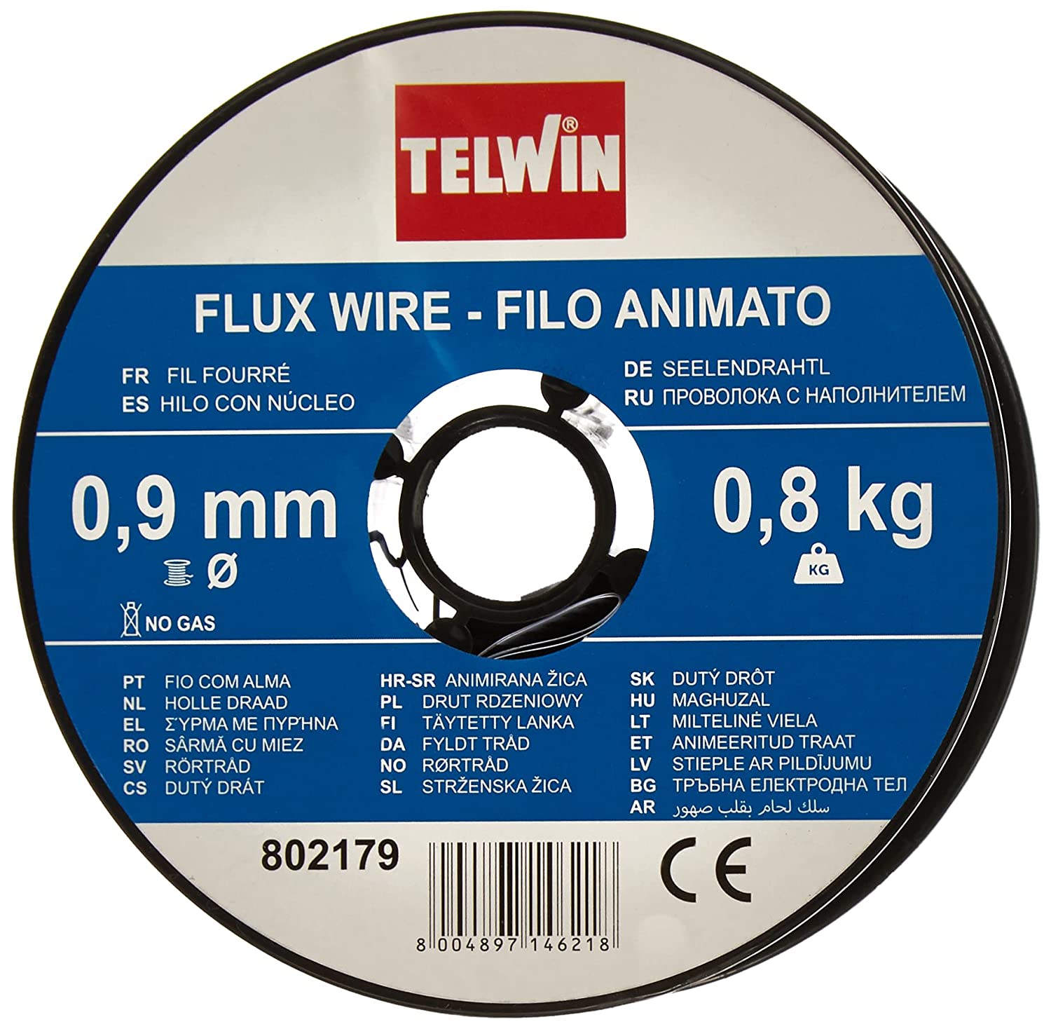 Bobina Filo Animato Telwin 0,9 mm, 0,8 kg, Filo per Saldatura senza Gas (FLUX) su Acciaio e Ferro | Telwin