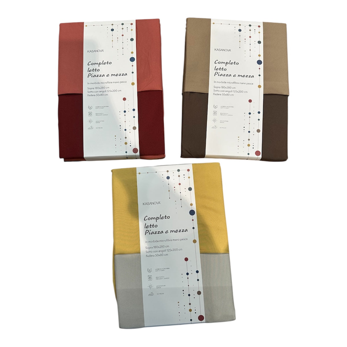 Completo letto (1/2 Piazza e mezza) in Microfibra Effetto Mano Pesca, Asciugatura Rapida | Kasanova