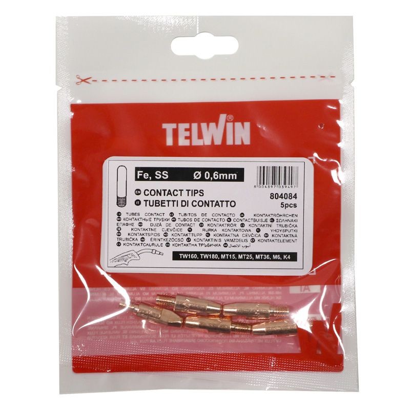 Kit 5 Tubetti di Contatto Telwin 0,6 mm, Punte di Ricambio per Torcia MIG-MAG, Accessori Professionali per Saldatura a Filo Continuo | Telwin